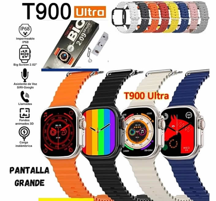 Disfruta de la tecnología avanzada y el diseño impresionante del Smartwatch T900 Ultra Big 2,09″ Infinity Display Serie 8 2023, tu compañero perfecto para mantener un estilo de vida conectado y saludable.