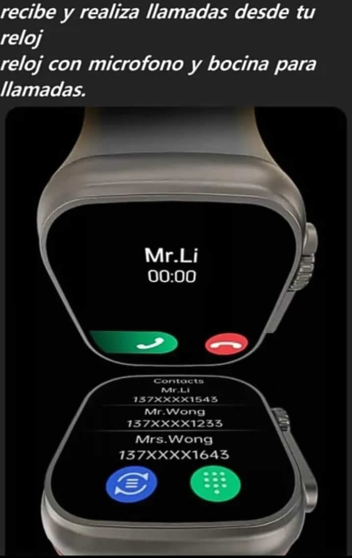 El T900 Ultra Big te mantiene conectado y notificado con vibraciones y sonido cuando recibes mensajes y notificaciones de aplicaciones como SMS, WhatsApp, Instagram, Facebook, Twitter y más. Su amplia compatibilidad de idiomas te permite usarlo en español, inglés, chino simplificado, holandés, ruso, francés, alemán, portugués, turco, malayo, polaco, checo, eslovaco, árabe, tailandés e italiano.